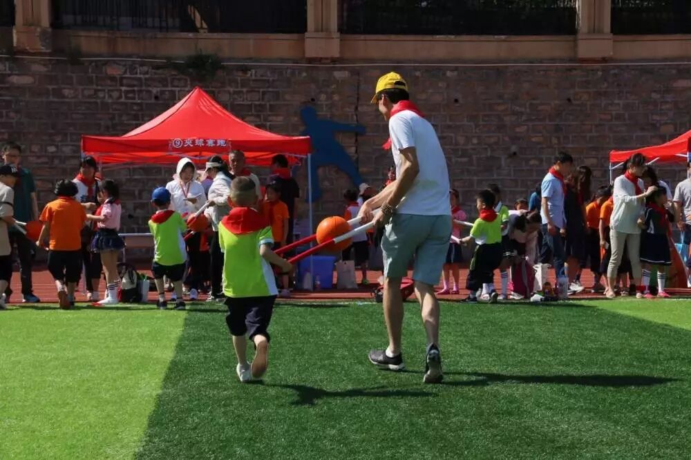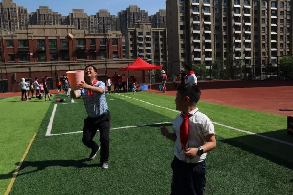 接下来,本次“亲子趣味”运动会的总裁判长体育组韩文老师向大家介绍了精心准备了12个项目。其中有4个学生单项,包括趣味篮球、垒球投掷、袋鼠跳、跳绳。还有8项亲子项目,包括愚公移山 、亲子运球 、亲子跳绳、夹球赛跑、亲子同心、两人三足、亲子接力跑。所有项目同时开始,同时进行。同学们和家长们可以根据自己的喜好选择喜欢的项目,通关一个游戏可以获得一份奖品,让同学在“六一”这一天玩个痛快。