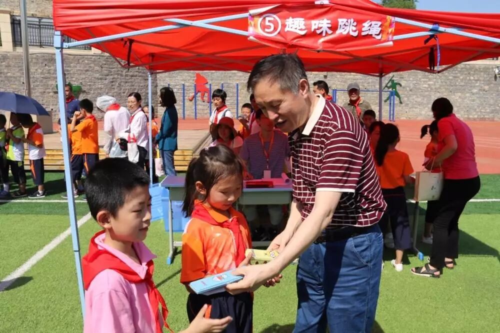 此次运动会还得到了山东省实验小学总部的关注和支持,山东省实验小学苗建校长(书记)专门委派李笃强副校长亲自到场,亲切看望了参加运动会的全体少先队员,并向全体少先队员致以“六一国际儿童节”节日的问候。