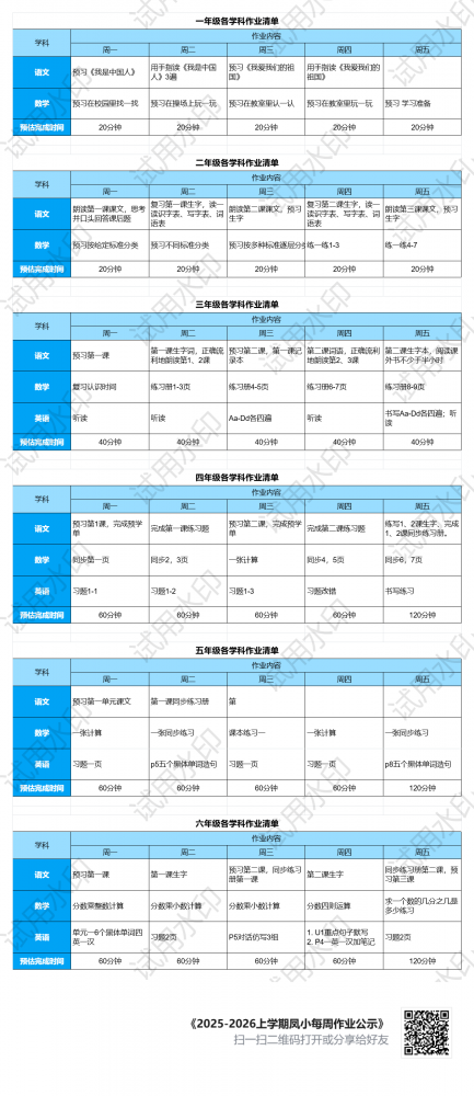 凤凰路小学东校区第十五周作业公示...